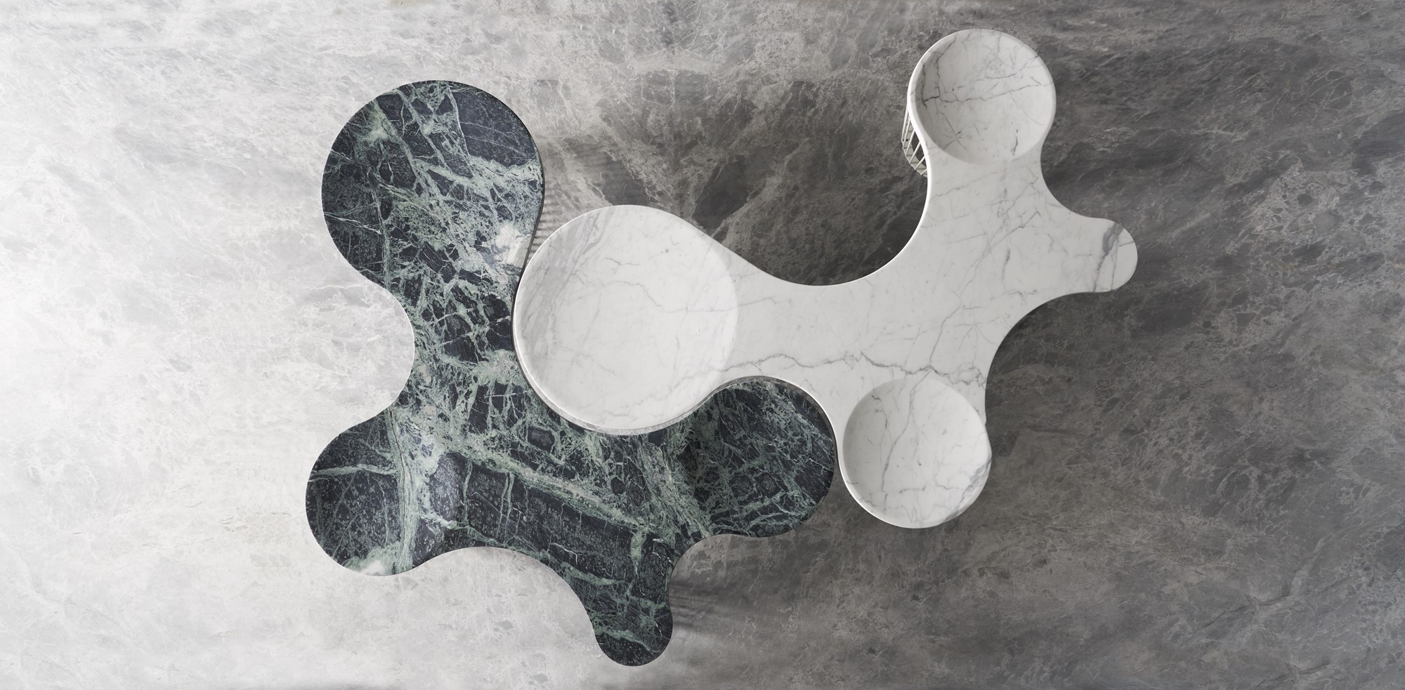 Their shapes recall the organic growth and the growth sequences of natural organisms that create complex shapes starting from a unit cell. From the unicellular primary element, they evolve by freely disassembling and re-assembling, following their natural laws, creating surprising complex combinations from simple shapes. The choice of marble surfaces and of their colours allows to create a pleasant overall effect that relates the peculiarity of every unit to the seating system. The marble surfaces are designed to get a comfortable seating and the light structure, made of slender steel elements, enhances their function and lightness. Together or isolated, identical or different, the Flora seating system adds value to the interior design and gives lightness to the transition spaces. The assembled units give value to the space where they are located, allowing pleasant chromatic combinations and creating an alternative to the traditional seat. They are useful and friendly, and they complete the interior design project with sober lightness.